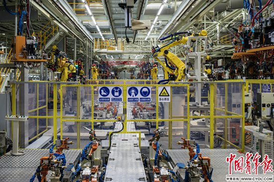 2018年,华南某合资品牌工厂内生产场景。从自动化生产设备到本土高端人才培养;从汽车生产工艺、生产规模,到零部件质量管控,中国汽车业已经跻身世界一流水平。中国青年报·中国青年网记者李隽辉/摄